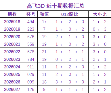 开奖回顾:福彩3D开奖号为126,和值为9,其中奖号012路比为1:1:1,大小比1:2。